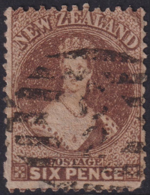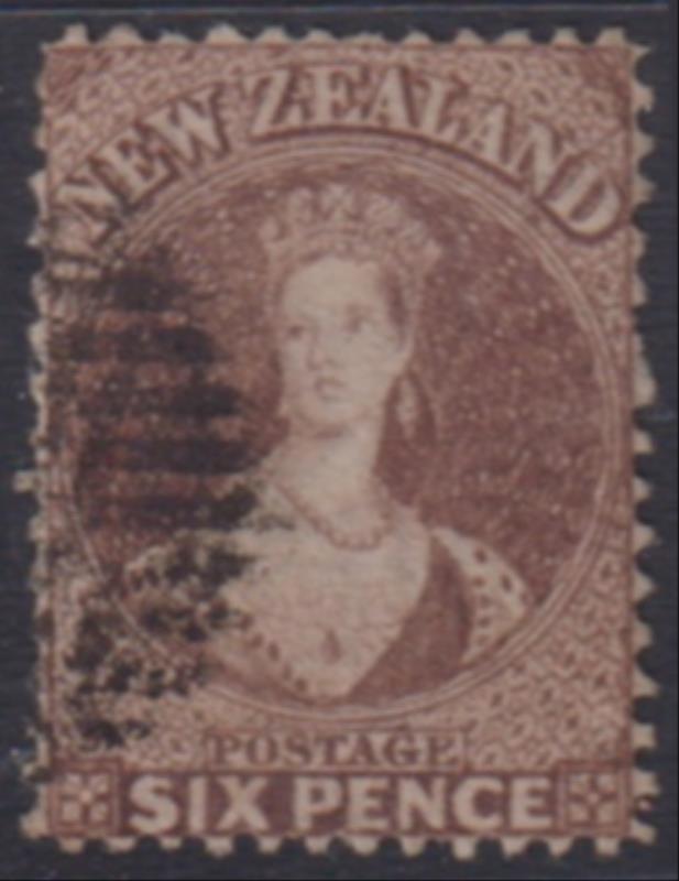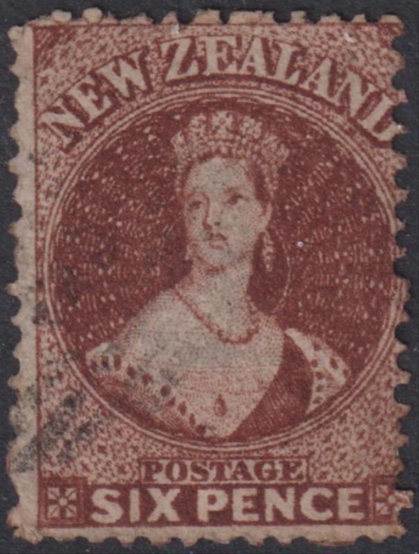 FFQ Chalon 6d red-brown, p12½, NZ wmk. SG 108. Cat £65. FU. (Image)