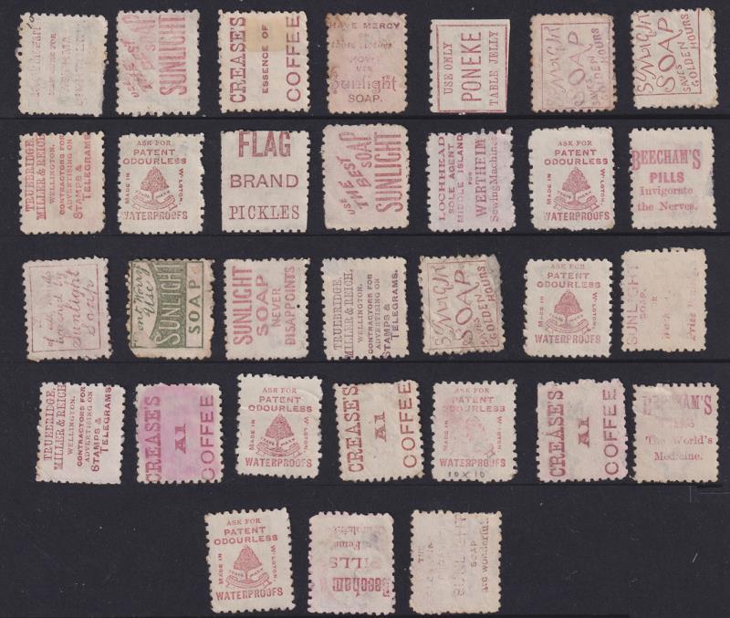 1893 2d SSF mainly red-brown advts x 30, also 1 green, variable cond. GU/FU. (Image)