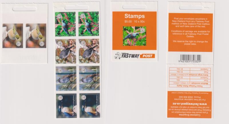 Fastway Post c2007 $5 NZ Native Birds booklet, split, 10v (5 diff x 2). MUH. (Image)