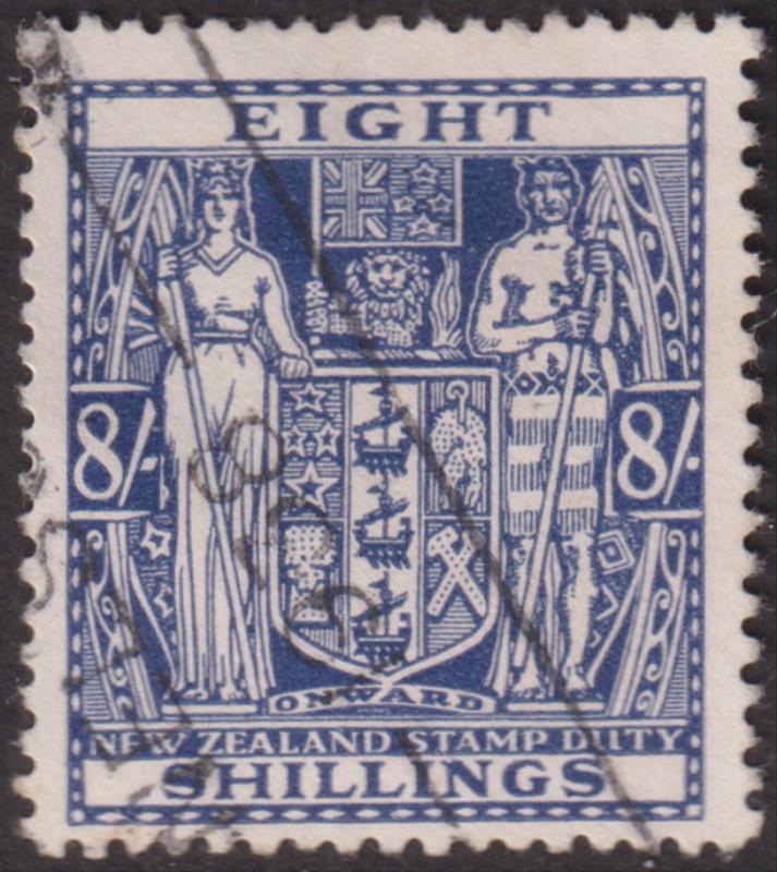 1931 8/- Arms indigo-violet, Cowan paper, light roller cancel. CP Z37a. Cat $95. FU. (Image)