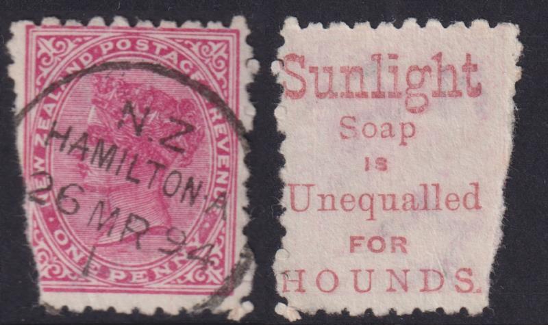 Danevirke (PM 1886-96 to Dannevirke) fine near complete F-type (squared circle) d/s 5 AU 95 on 1d SSF. This d/s used only July 1895-Jan 1896. Rated "10" by one pundit but hardly rare.