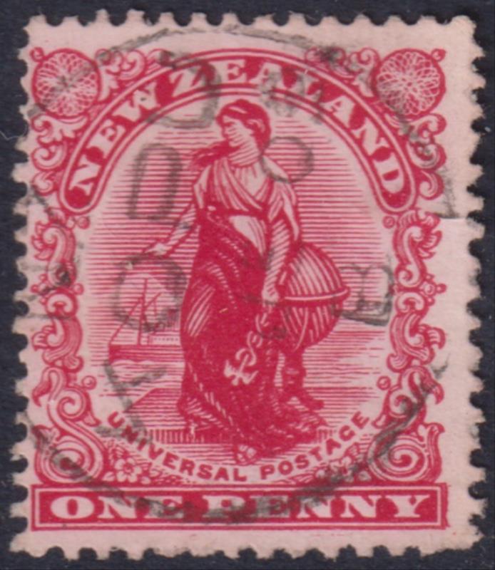 Rangitata (TU 1876-1964) fine near complete 13 Jan 190? "A" class cancel on 1901 1d Universal. Wooders 4. (Image)