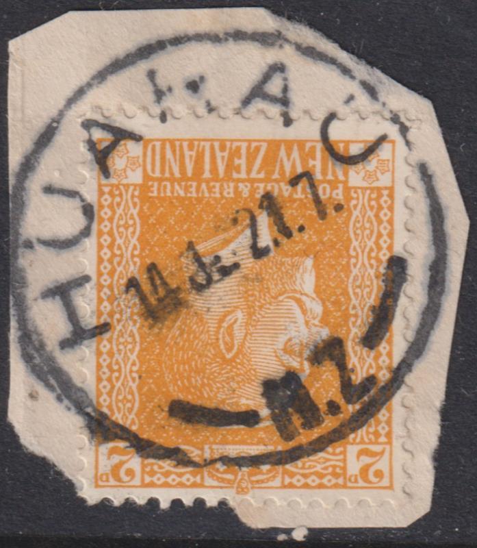 Kahuika (DN 1899-1950) fine fairly complete strike (tip of K- off stamp) of H-type cds AP 24 21 on 2d GV. Scarce. (Image)