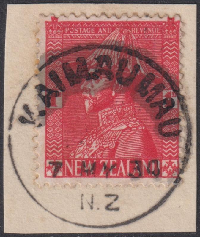 Kaimaumau (WR 1907-39) fine slightly overinked B-type cds (complete) 7 MY 34 on 1d GV on neat piece. Scarce. (Image)