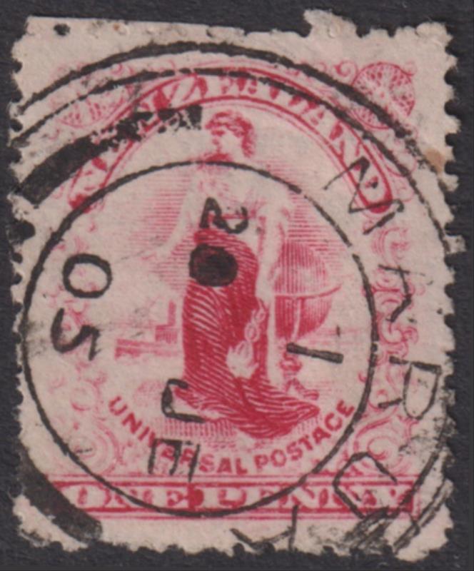 Wendon Valley (IN 1891-1927) good part strike of A-type cds 13 DE ?? on 1d Dominion. Name complete but patchy. Scarce. (Image)