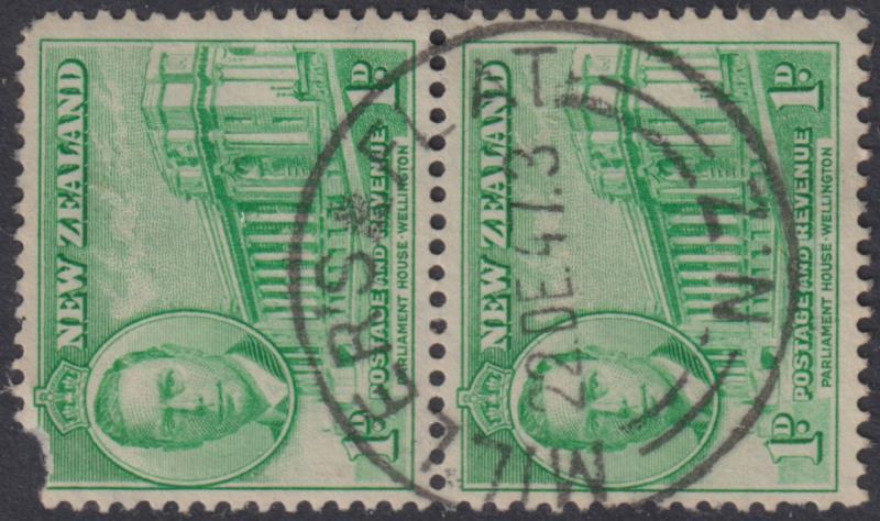 Miller's Flat (DN 1890-1951) superb J-type cancel 22 DE 47 on 1d Peace vert pair (upper stamp damaged). Wooders 5. (Image)