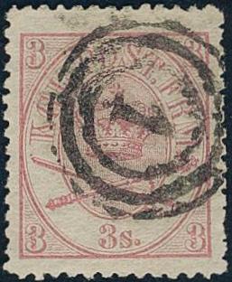 Denmark, Facit 17 or Scott 17 or AFA 12A used, 1870 Large Oval Type 3 skill lilac-rose, line perf 12½. F 6000 (Image1)