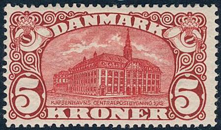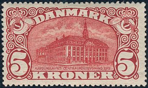Denmark, Facit 120 or Scott 82 or AFA 67 *, 1912 GPO Copenhagen 5 Kr brown-red, watermark crown. F 3300 (Image1)