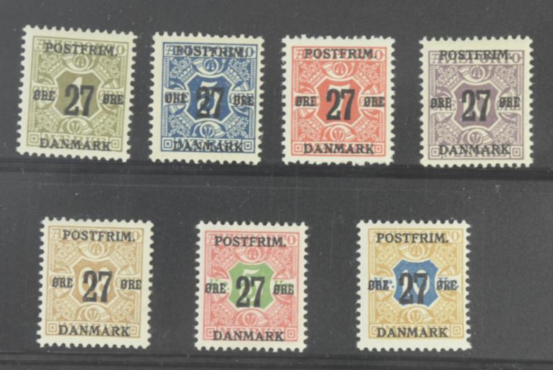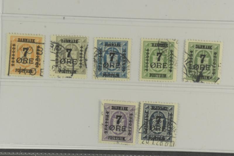 Denmark, Facit 177–83 **, 1918 Surcharge on Newspaper stamps SET watermark crown (7). F 6000 (Image1)