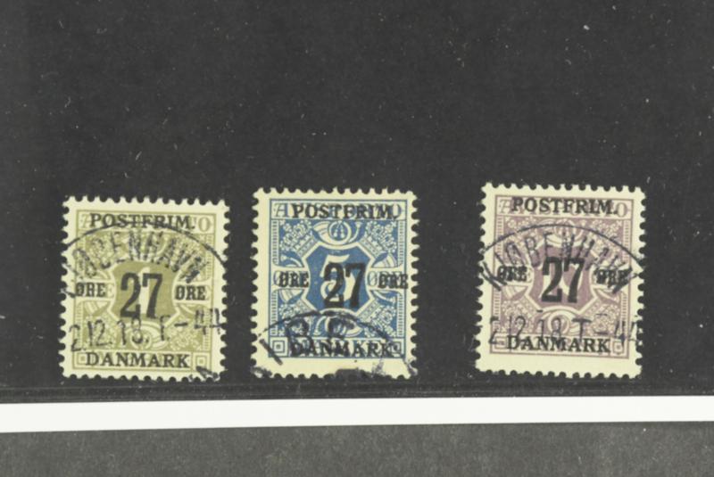 Denmark, Facit 177-78, 180 used, 1918 Surcharge on Newspaper stamps 27 / 1 øre, 5 øre and 10 øre, watermark crown. F 6600 (Image1)