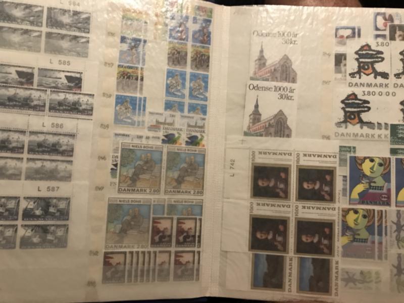 Denmark, **. Lot with mostly units 1970s–1990s incl. 100s of blocks of four, etc. Face value approx. 9500. (Image1)