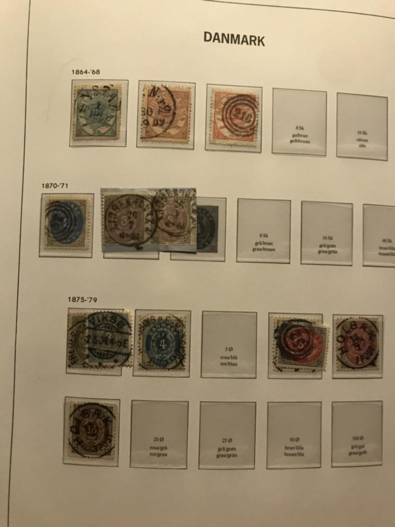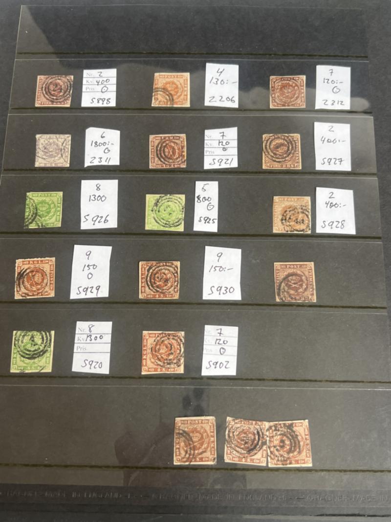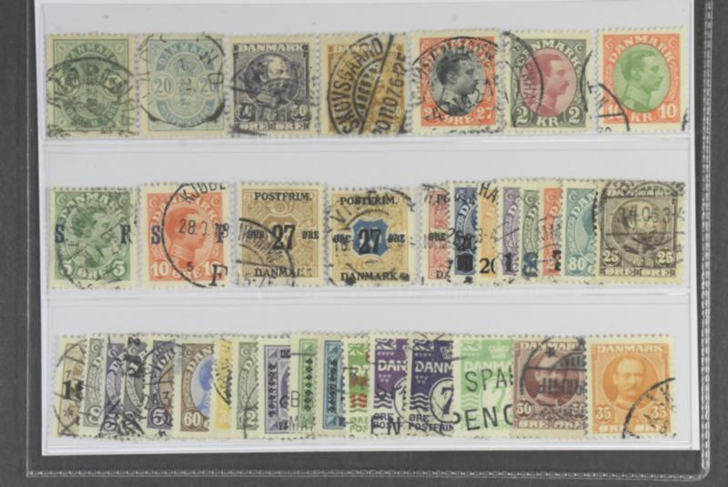 Denmark, Used lot 1851–1920s on visir leaves. With some better skilling stamps, some Bi-colored and several overprints. Please see a selection of scans at www.philea.se. Somewhat mixed quality (100+) (Image1)