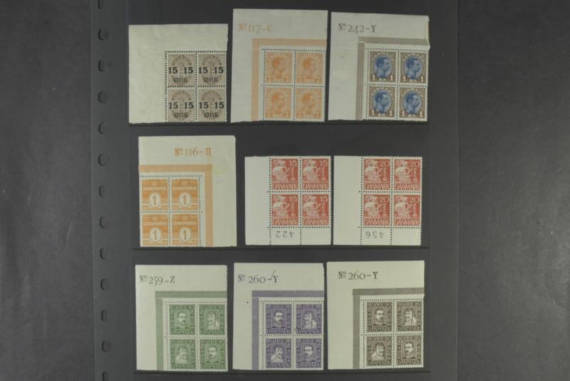 Denmark, ** lot 1904–1937 on five visir leaves. 19 blocks of four with some a bit better. e.g. 300th anniversery of post and Dybbol Mill booklet panes. Mostly fine quality (228) 4 more images are available at www.philea.se (Image1)