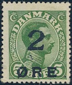 Denmark, Färöarna, Facit 3 *, 1919 Surcharge on Christian X 2 øre/5 öre green. Cert. Grønlund. 1 more image is available at www.philea.se. (Image1)