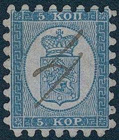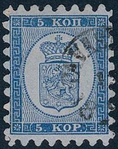 Finland, Facit 3 or Scott 4 or Norma 3 used, 1860 Coat-of-Arms Russian values 5 k blue. F 1800 (Image1)
