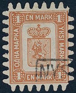 Finland, Facit 10 or Scott 11 used, 1867 Coat-of-Arms Finnish values 1 Mk brown. cancelled by NYS.... F 7500 (Image1)