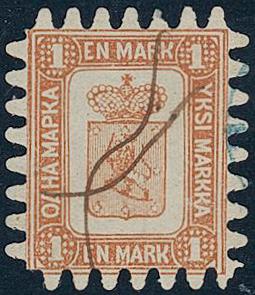 Finland, Facit 10 or Scott 11 used, 1867 Coat-of-Arms Finnish values 1 Mk brown. cancelled by two pen strokes. F 7500 (Image1)