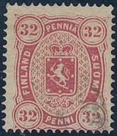 Finland, Facit 11 or Scott 23 used, 1875 Coat of Arms m/75 32 p carmine, Copenhagen printing (1). Cert by Ossa. F 4000 1 more image is available at www.philea.se. (Image1)