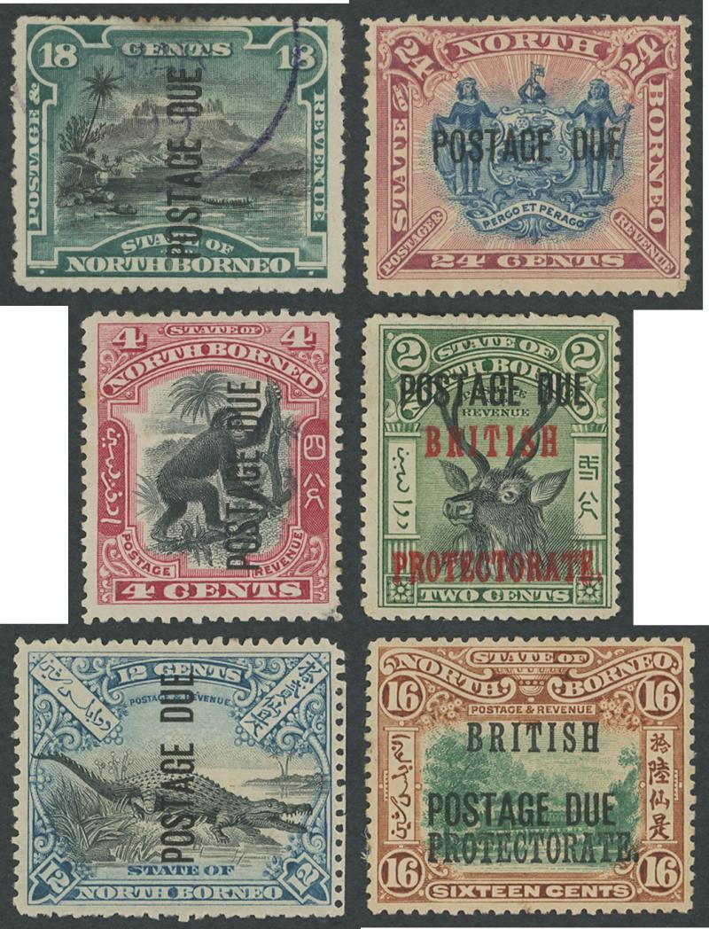 POSTAGE DUES: 1895-1930s range including 'POSTAGE DUE' Overprints on Pictorials 1895-97 5c, 8c, 12c, 18c x2 (horizontal & vertically reading upwards) & 24c (Perf 14½-15) * and 2c, 12c & 18c (vertically reading upwards) used, 1897-99 4c, 5c x2, 12c, 18c & 24c *, 1902-12 on Protectorate Overprints 'POSTAGE DUE' at Centre set * (ex 1c; the 2c **) and 'POSTAGE DUE' at Top 2c * & used, 1918-30 Thick Letters Perf 13½x14 simplified set * plus extra 12c x2 * & Perf 12½ set *, 1930-38 Thin Letters on 16c x2 *, etc, also 1939 Crest set * plus 2c used, condition a little variable some with minor blemishes, gum tropicalisation and/or hinge remainders, Cat £3000+. An excellent group for further study.