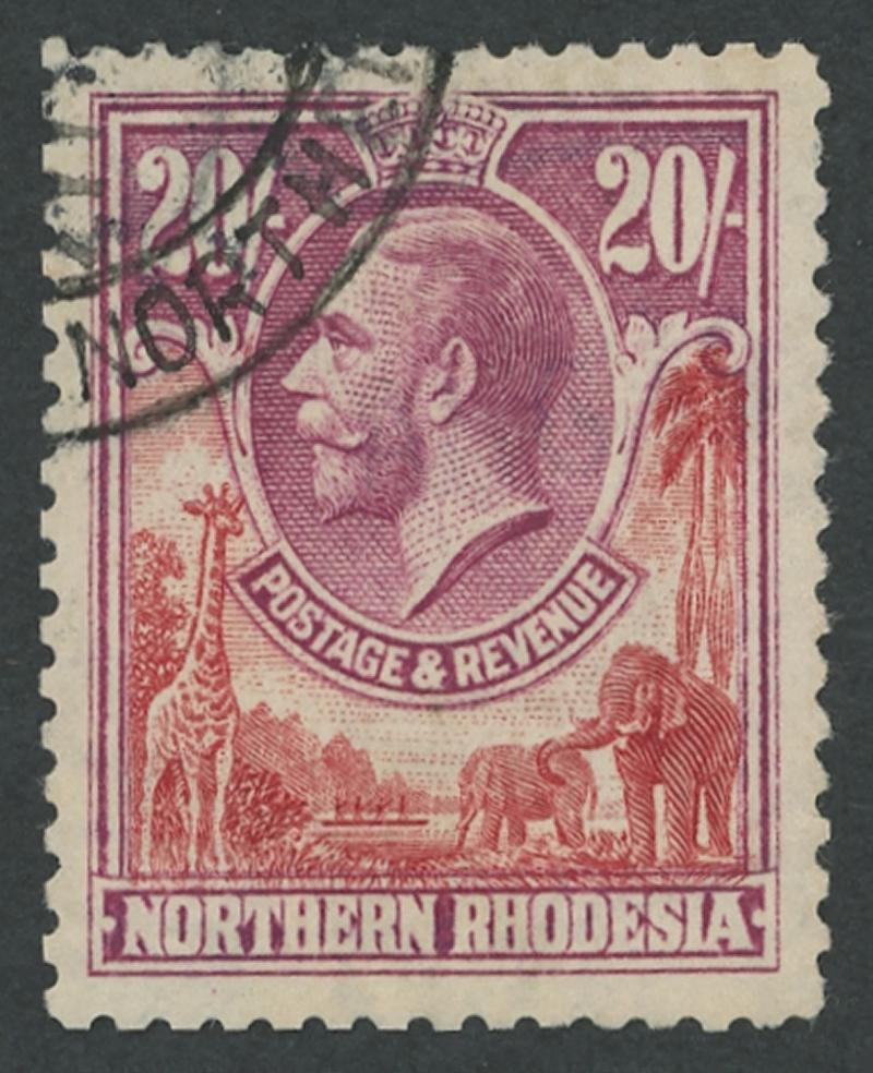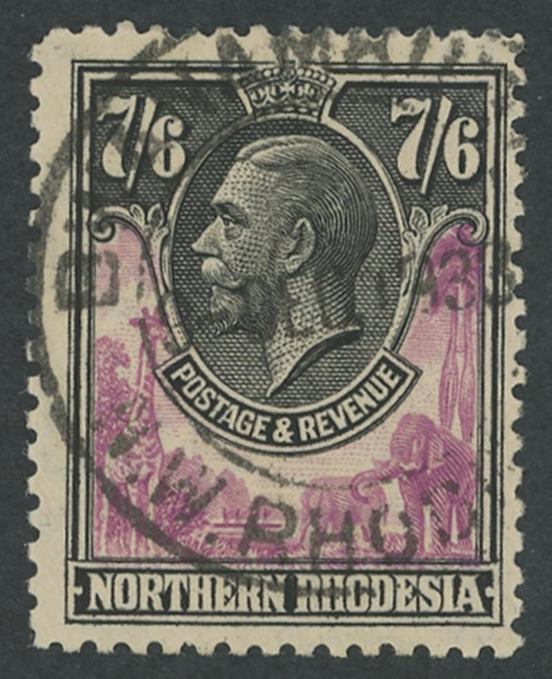 1925-29 KGV Giraffe & Elephant 7/6d purple & black SG 15, very fine largely complete 'BWANAMKUB[WA]/N.W. RHODE[SIA]' 1933 cds cancel, Cat £300. (Image1)