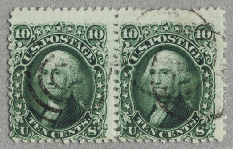 Automatisch generierte Übersetzung: 1861-62,10 c. im Paar, grün, gebraucht, Zähnung 12, sehr frisch und gesucht, VF-XF! Schätzpreis 120 EUR.(Image)