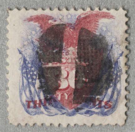 Automatisch generierte Übersetzung: 1869,30c., ultramarine und karmin, gebraucht, Zähnung 12, mit Gitter, gestempelt mit stumme Kork Handstempel, frisch und gesucht, VF-XF! Schätzpreis 450 EUR.(Image)