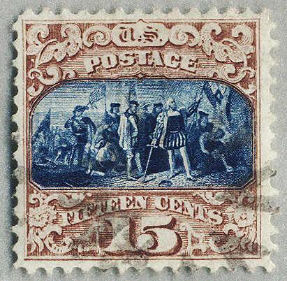 1869, 15c, brown and blue, Type II, Landing of Columbus, used black cancel, cert. and signed Ferchenbauer, very good centring, perfect quality, XF! Estimate 250€.