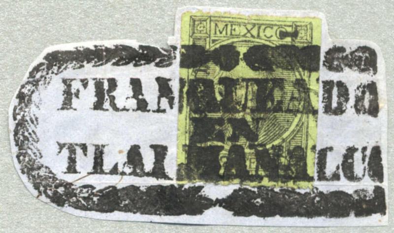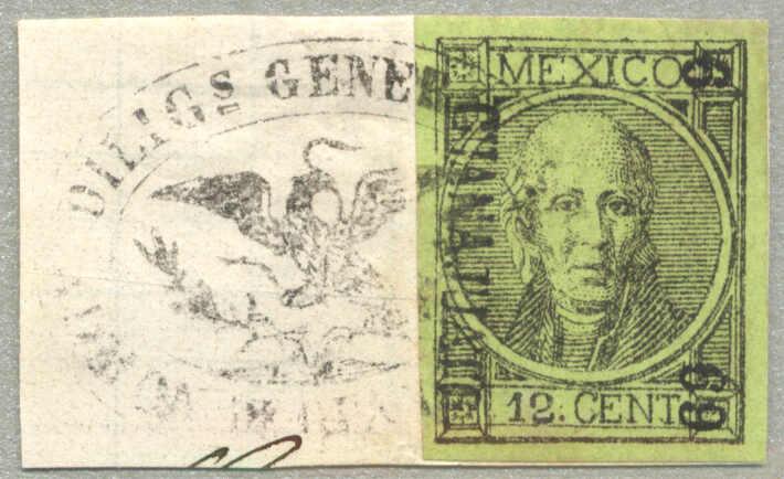 1870-1871, 12c, green/black, perf, CHALCO district, cancelled with TLALMANALCO, (Schatzkes 103) ex Provera, small tear at top, still desirable, F! Estimate 300€.