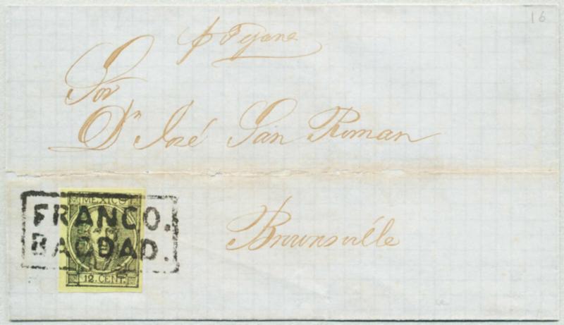Automatisch generierte Übersetzung: 1870, 12c, schwarz/grün, Paar auf Faltbrief, ungezähnte, MORELIO Landkreis, auf Brief von MIACATLAN zu Mexiko, gestempelt mit FRANCO EN MIACATLAN (Schatzke 225), ex Provera, außergewöhnlich frisch und gesucht Ganzstück, Kabinett! Schätzpreis 600 EUR.(Image)