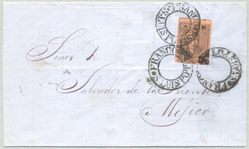Automatisch generierte Übersetzung: 1871,100c, schwarz/braun, ungezähnte, POTOSI Landkreis, auf Brief von SAN LUIS POTOSI zu Mexiko, S. L POTOSI mit Bezirkszahl 8 ist sehr selten, gestempelt mit FRANCO S. LUIS POTOSI (Schatzke 1460), ex Provera, breite Ränder oben mit Nachbarmarke, außergewöhnlich frisch und gesucht Ganzstück, Kabinett! Schätzpreis 2. 000 EUR.(Image)