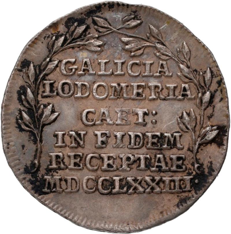Österreich Maria-Theresia (1740-1780), Ag Jeton auf die Huldigung Galiziens und Lodomeriens 1773, 1,95 g, 21,53 mm, kl. Henkelspur, ss, Hutten- Czapski 4571 Katalog-Nummer(n) : Hutten-Czapski 4571 (Image)