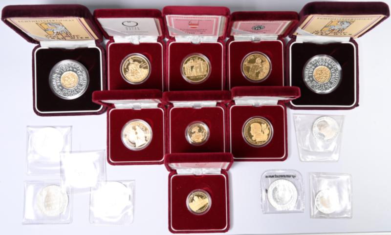 Österreich Gedenkmünzen aus Österreich, dabei 7 x 1.000 ATS mit Ausgaben wie 800 Jahre Münze Wien 1994 (Bi-Metall, 2x), Mozart - Zauberflöte 1991 (2x), Johann Strauß 1992, Maria Theresia 1993 und 50 Jahre Zweite Republik 1995; 2 x 500 ATS (Don Giovanni 1991 und Rudolf II. 1993); 5 x 50 ATS und 1 x 25. Dabei noch ein Umlauf 10er 1970. (Image)