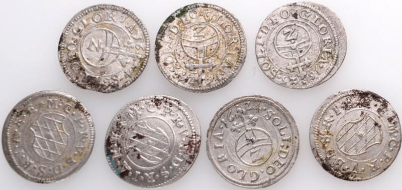 Altdeutschland und RDR bis 1800 Bayern, Maximilian I. 1598-1651: 7 x 2 Kreuzer / Halbbatzen. Dabei die Jahrgänge 1623, 1624 (5x) und 1625. Hahn 93, sehr schön - vorzüglich, vorzüglich. (Image)