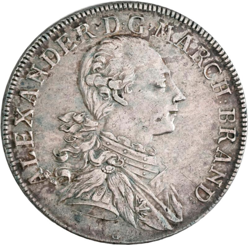 Altdeutschland und RDR bis 1800 Brandenburg-Ansbach, Alexander 1757-1791: Taler (Konventionstaler) 1777 Schwabach. 27,93 g. Davenport 2014, Slg. Wilmersdörffer 1098. Fast sehr schön. Katalog-Nummer(n) : Dav. 2014 (Image)