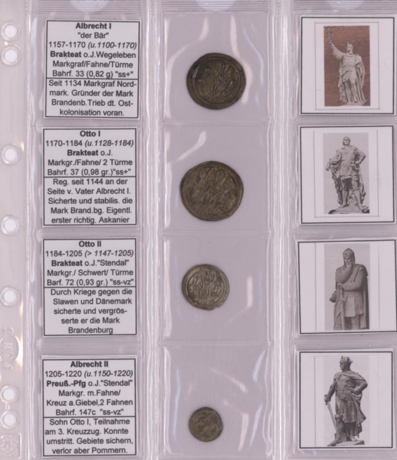 Altdeutschland und RDR bis 1800 Brandenburg-Preußen: Zeitreise durch die Jahrhunderte. Album mit fast 80 Münzen, liebevoll zusammengetragen, gründlich recherchiert, jede Münze beschriftet. Dabei Brakteaten des 12ten Jhd.; Pfennige des 13ten und 14ten Jhd.; Groschen des 15ten Jhd.; Denare, Kreuzer und Talerstücke des 16ten und 17ten Jhd. bis zum Vereinstaler oder 5 Mark. Eine einmalige Gelegenheit für Sammler und Kenner. Unbedingt besichtigen und durchrechnen. (Image)