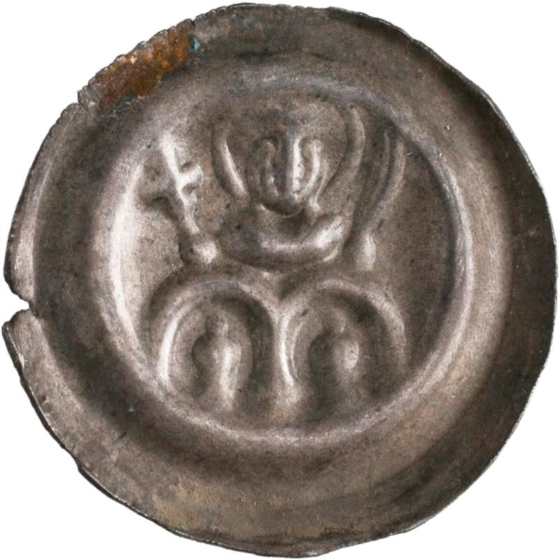 Altdeutschland und RDR bis 1800 Halberstadt-Bistum, Ludolf I. von Schladen 1236-1241: Brakteat; Brustbild des Hl. Stephan mit Kreuzstab und Palmzweig über Doppelbogen, in jedem Bogen ein Turm. Besser/Brämer/Bürger 20.15; 0,64 g, fast vorzüglich. (Image)
