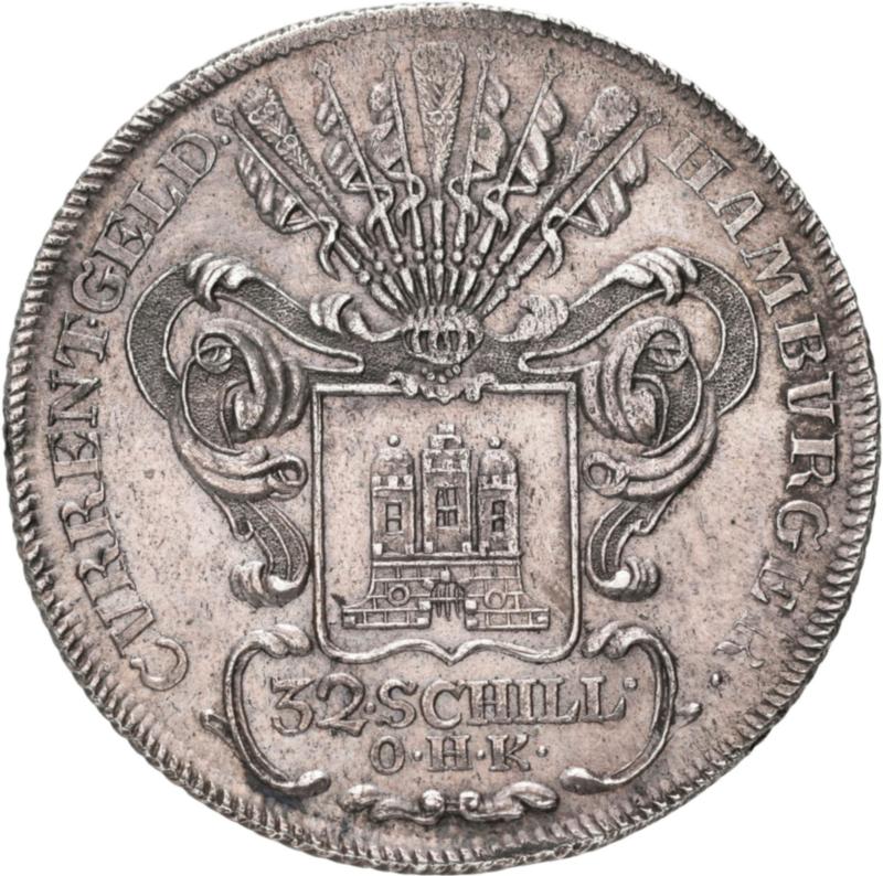Altdeutschland und RDR bis 1800 Hamburg, 32 Schilling 1767 OHK mit Titel Josef II. 18,35 g. Gaedechens 648, Jaeger 28. Justierspuren, Sehr schön - vorzüglich. Katalog-Nummer(n) : Gae 648 (Image)