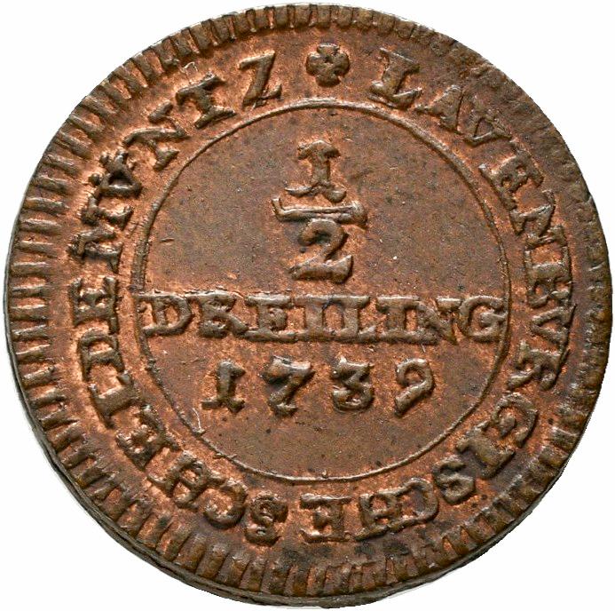 Altdeutschland und RDR bis 1800 Lauenburg, Georg II. von Braunschweig-Calenberg-Hannover 1727-1760: ½ Dreiling 1739 S. Monogramm GR. Welter 2663, Jaeger 13. Selten in dieser Erhaltung, vorzüglich - Stempelglanz. Katalog-Nummer(n) : We 2663 (Image)
