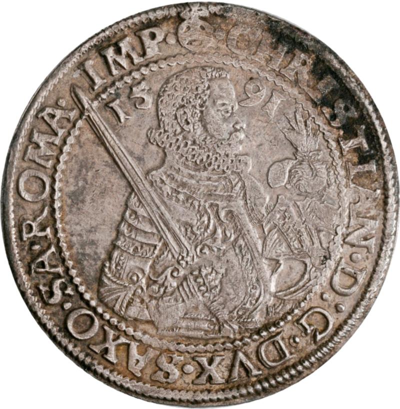 Altdeutschland und RDR bis 1800 Sachsen, Kurfürstentum, Christian I. 1586-1591: Taler 1591, leichte Korrosionsspuren, 29,09 g, Davenport 9806, Schnee 731, schön - sehr schön. Katalog-Nummer(n) : Dav. 9806 (Image)