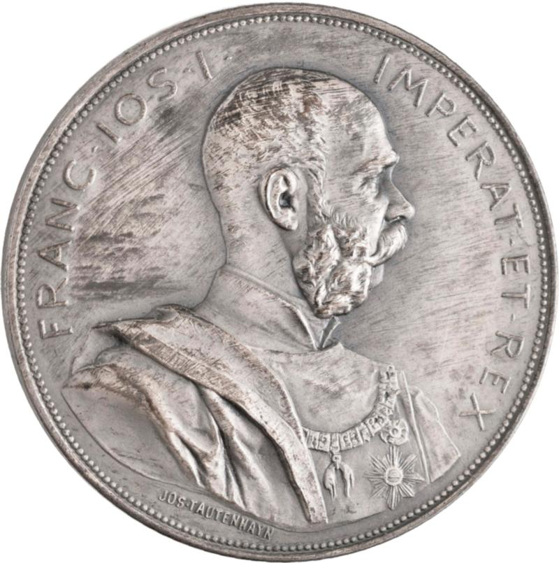 Haus Habsburg Franz Joseph I. 1848-1916: Silberne Staats-Medaille (Preismedaille für Künstler) von Joseph Tautenhayn, verliehen 1906, auf die 22. Jahres Ausstellung 1906 Künstlerhaus Salzburg. Brustbild von Kaiser Franz Joseph I. im Ornat des Goldenen Vlies // Stehende Muse (Clio), umgeben von Attributen der Kunst, gestützt auf die Verleihungstafel. Hauser 2782. 39,2 mm, 30 g. In Originaletui, Prägefrisch. Katalog-Nummer(n) : Ha 2782 (Image)