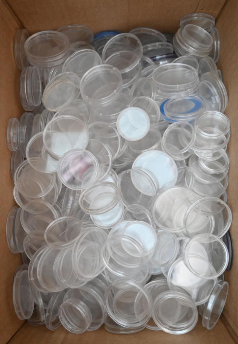 Zubehör Karton mit einigen hundert Münzkapseln, verschiedene Größen. This lot is "Gebotslos". The Minimum Bid is 20 €, it will be sold at the HIGHEST BID (not one bidding step above the second highest bid). (Image)