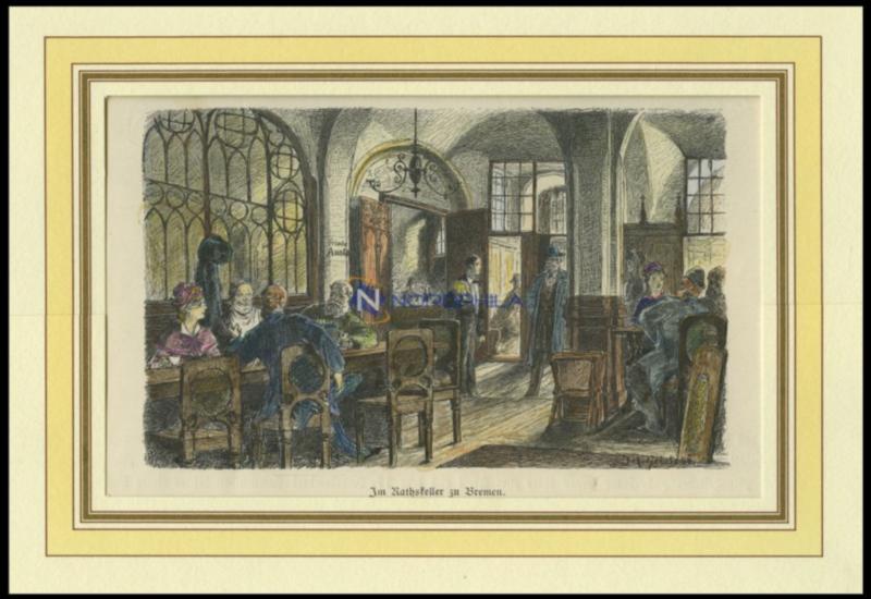BREMEN: in the Ratskeller, coloured wood engraving from Gehrts from 1881 (Image)