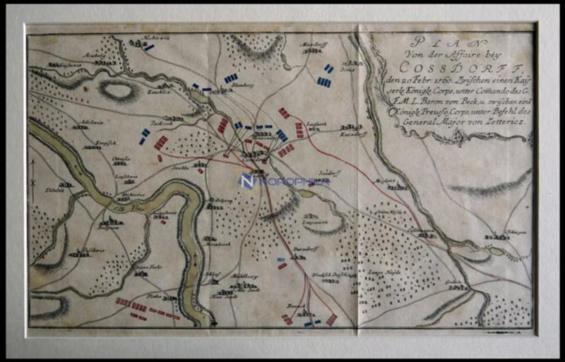 COSSDORF, battle from 20.2.1760 with environment, original coloured copper engraving by approximate 1760 (Image)