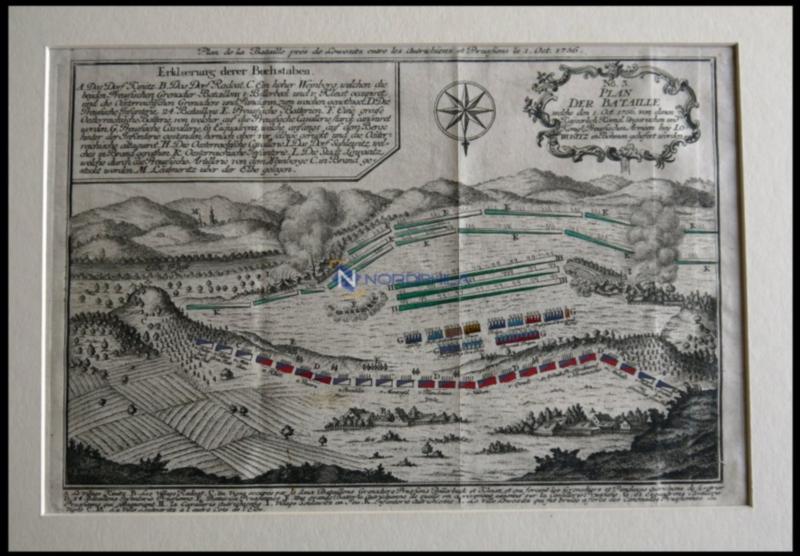 LOWOSITZ, battle from 1.10.1756, original coloured copper engraving by approximate 1760 (Image)