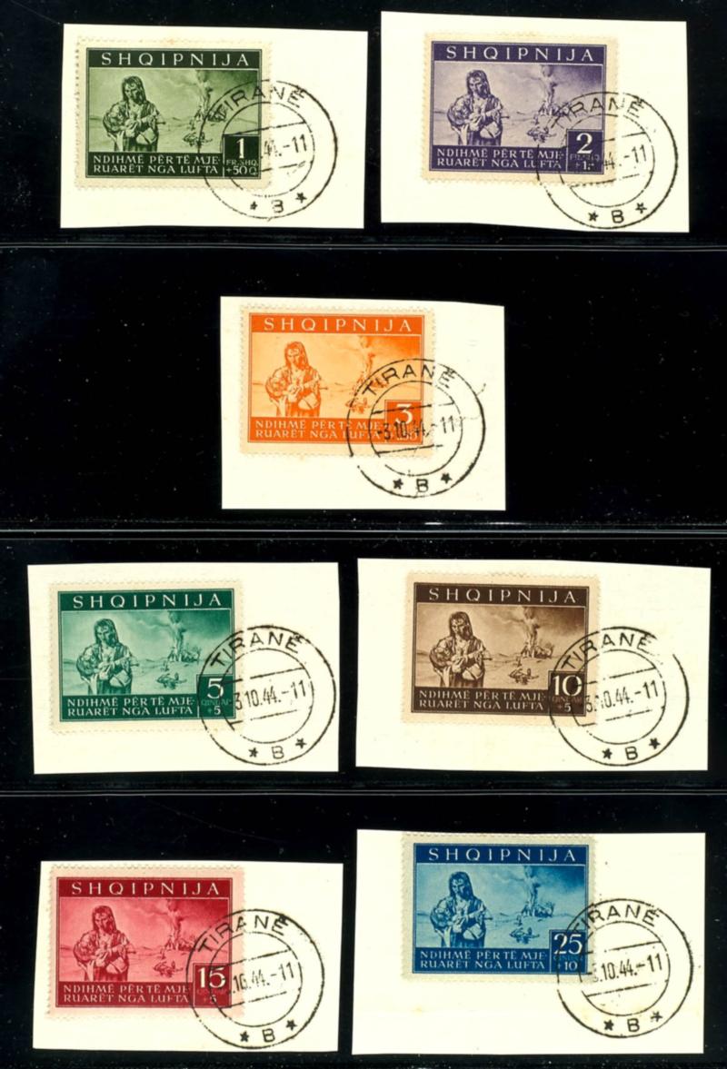 Victim the air raids, uniform used TIRANE 3.10.44 in choise copy condition on small wise letter pieces, photo expertize Brunel BPP ". Perfect" (15/21) Certificate Opfer der Luftangriffe, einheitlich gestempelt TIRANE 3.10.44 in Kabinetterhaltung auf kleinen weißen Briefstücken, Fotobefund Brunel BPP "... einwandfrei" (Image)