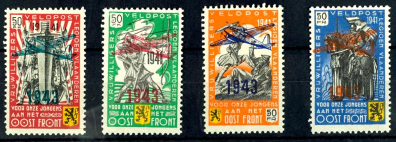 Plus 50 Fr. "for our soldiers in the eastern theatre of war" with coloured overprint, all fours values, perfectly mint never hinged, Michel 450.- (V/VIII) + 50 Fr. "Für unsere Soldaten an der Ostfront" mit farbigem Aufdruck, alle vier Werte, tadellos postfrisch, Mi. 450.- (Image)