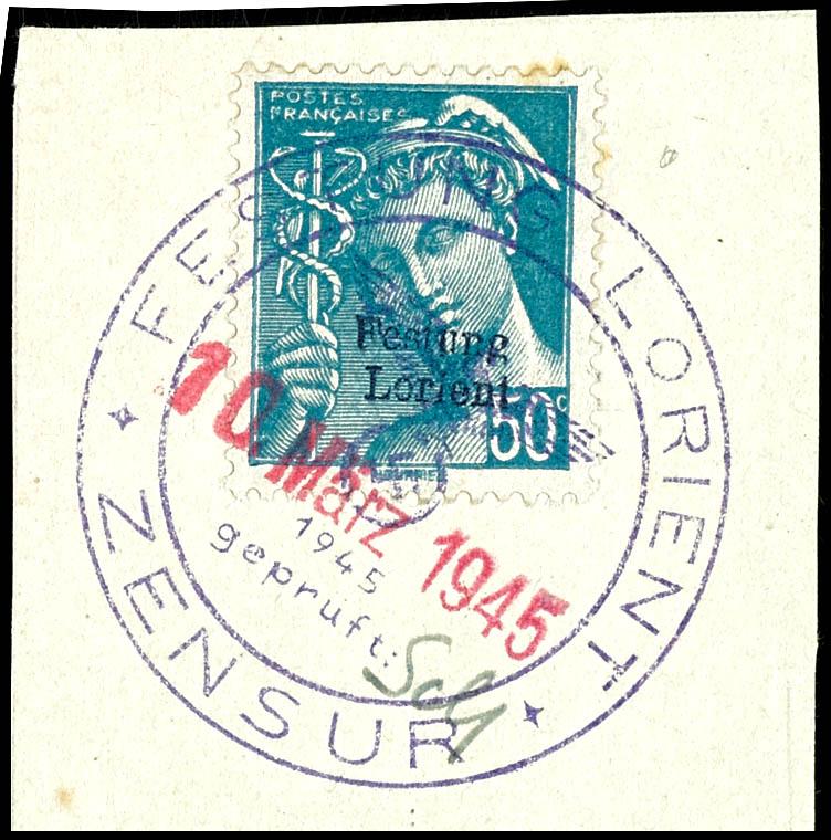 50 C. Postage stamps issue "peace allegory with new value 50 C. " with overprint in type I, properly franked multiple franking on cover from "Ghyvelde 23.07.1940" to Dunkirk with reverse arrival postmark from "24.07.1940", very fine, expertized Calves, Dreyfus, Roumet and expertise Lothar Herbst VP (2025) "the condition is perfect. The stamps are only in very small number of pieces known, therefore are they very rare. ", Michel 1.700.- (73(2)) Certificate 50 C. Freimarkenausgabe "Friedensallegorie mit neuem Wert 50 C." mit Aufdruck in Type I, portogerechte Mehrfachfrankatur auf Brief von "Ghyvelde 23.07.1940" nach Dünkirchen mit rs. Ankunftsstempel vom "24.07.1940", tadellose Erhaltung, geprüft Calves, Dreyfus, Roumet und Expertise Lothar Herbst VP (2025) "Die Erhaltung ist einwandfrei. Die Marken sind nur in sehr geringer Stückzahl bekannt, daher sind sie sehr selten.", Mi. 1.700.- (Image)