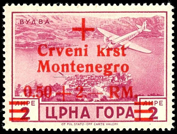 0, 50 plus 2, 00 RM Red Cross, "g in Montenegro normal standing", perfectly mint never hinged, photo expertize Robert Brunel VP "the condition is perfect", Michel 200.- (35I) Certificate 0,50 + 2,00 RM Rotes Kreuz, "g in Montenegro normalstehend", tadellos postfrisch, Fotobefund Robert Brunel VP "Die Erhaltung ist einwandfrei", Mi. 200.- (Image)