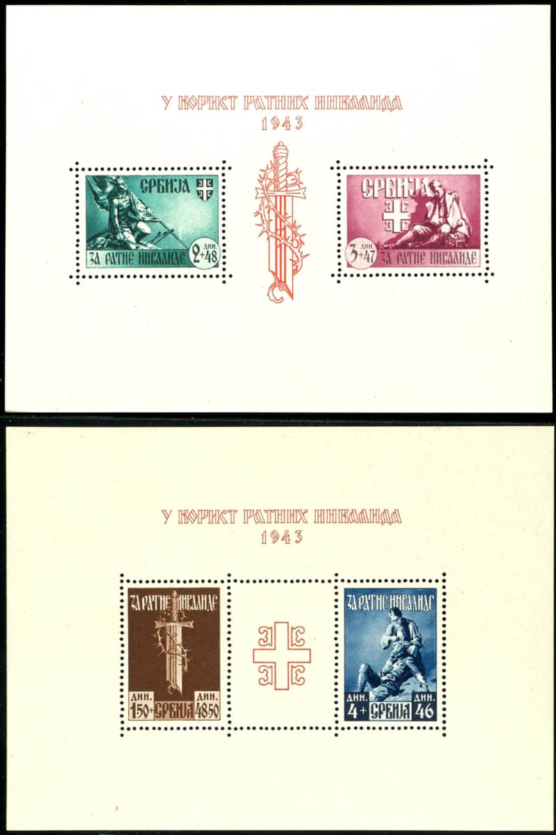 Souvenir sheet issue "Aid for the Serbian war invalids", souvenir sheet pair, mint never hinged, very fine, unsigned, Michel 700.- (Bl.3/4) Blockausgabe "Hilfe für die serbischen Kriegsinvaliden", Blockpaar, postfrisch, tadellose Erhaltung, unsigniert, Mi. 700.- (Image)