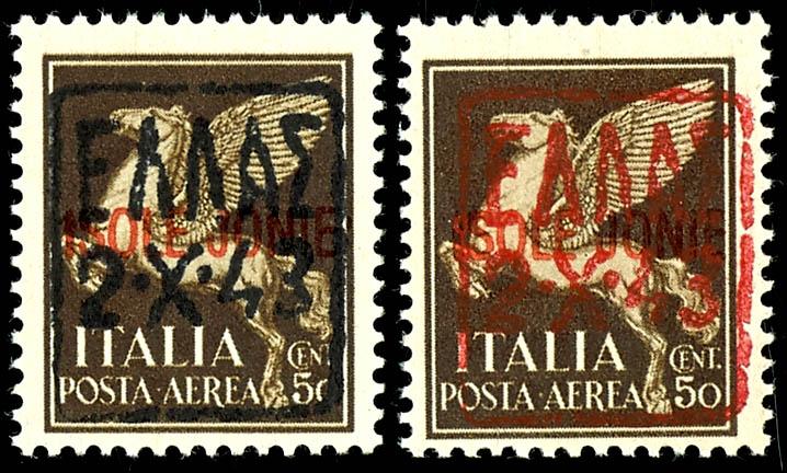 50 C. Airmail stamp, cancelled "Cetinje 2 * 10. XI. 43 *" - CTO on the founding day of the management committee dated, the stamp appeared first at the 9. December 1943, mould stain - otherwise pristine, photo expertize Brunel BPP (2010), Michel 120.- (11) Certificate 50 C. Flugpostmarke, entwertet "Cetinje 2 * 10.XI.43 *" - Gefälligkeitsstempel auf den Gründungstag des Verwaltungsausschusses datiert, die Marke erschien erst am 9. Dezember 1943, Stockflecken - sonst tadellos, Fotobefund Brunel BPP (2010),Mi. 120.- (Image)